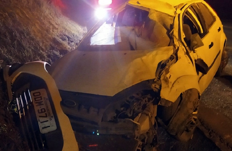 O acidente aconteceu na noite do último sábado, 16 de julho, por volta das 23h00, no Km 858 da BR-101, no trecho entre o distrito de Limeira e Teixeira de Freitas, quando o motorista de um veículo Fiesta, cor branca, placa policial ODM-9711, licenciado em Teixeira de Freitas, perdeu o controle da direção, saiu de pista e tombou.