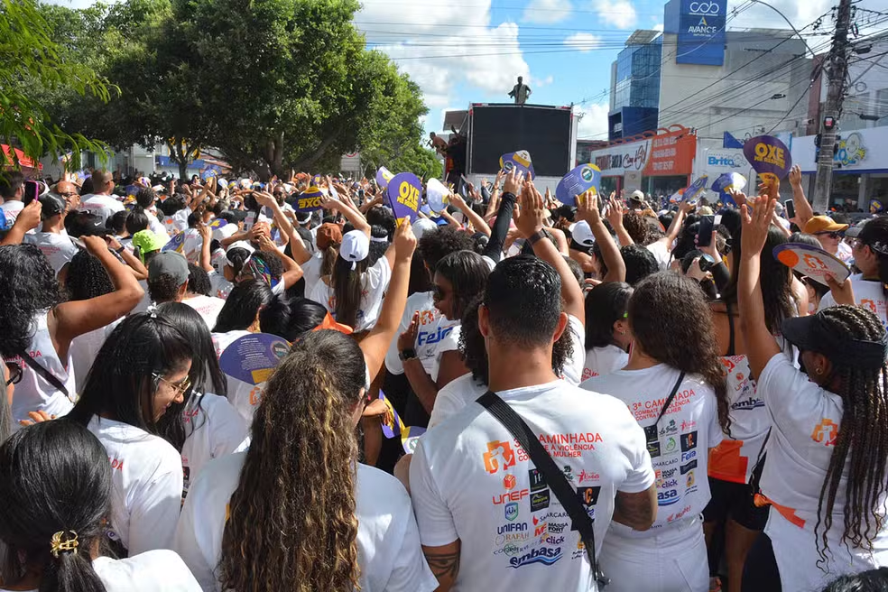 A 3ª edição da Caminhada de Combate à Violência Contra a Mulher foi realizada neste domingo (30), em Feira de Santana, segunda maior cidade da Bahia. O evento reuniu uma multidão, que percorreu o trecho entre as avenidas Maria Quitéria e Fraga Maia para pedir paz.